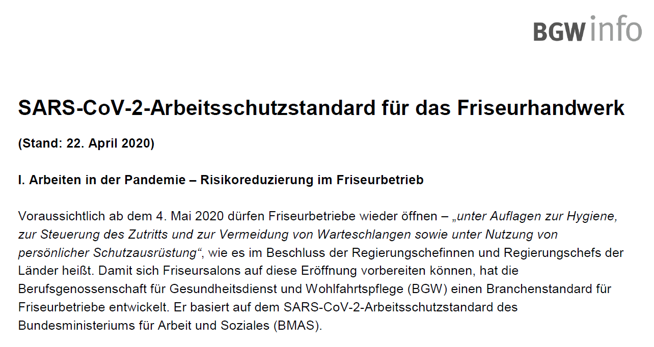 Arbeitsschutzstandarts Frisörhandwerk